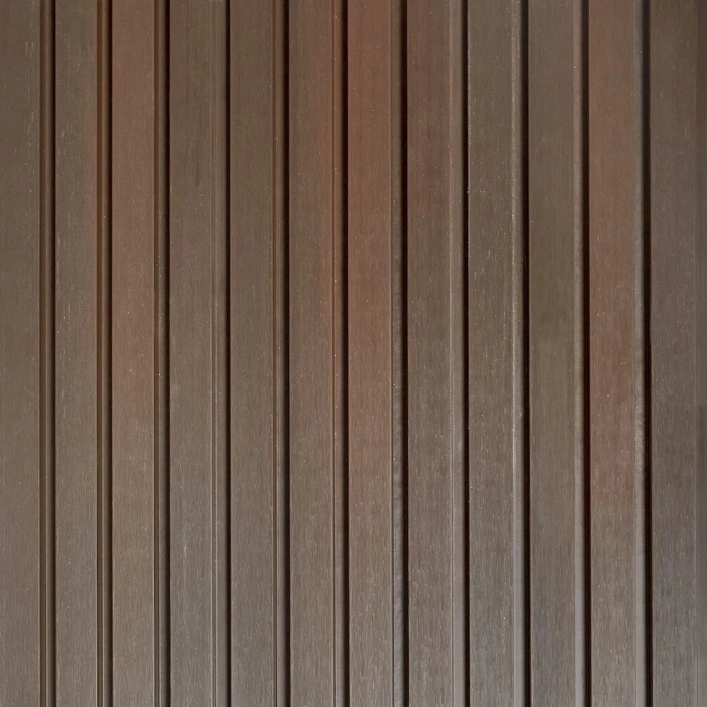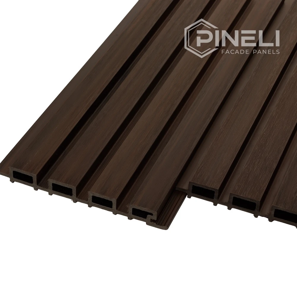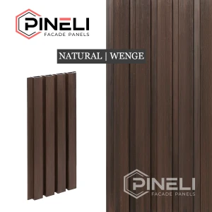 Фасадные панели Pineli Natural Wenge (цвет: Венге) выполнены в виде реек. Панели сочетает в себе простоту, элегантность и строгость. Это идеальное дизайнерское решение для для тех, кто хочет добавить в свой проект строгие темные цвета или элегантный светлый цвет клена.