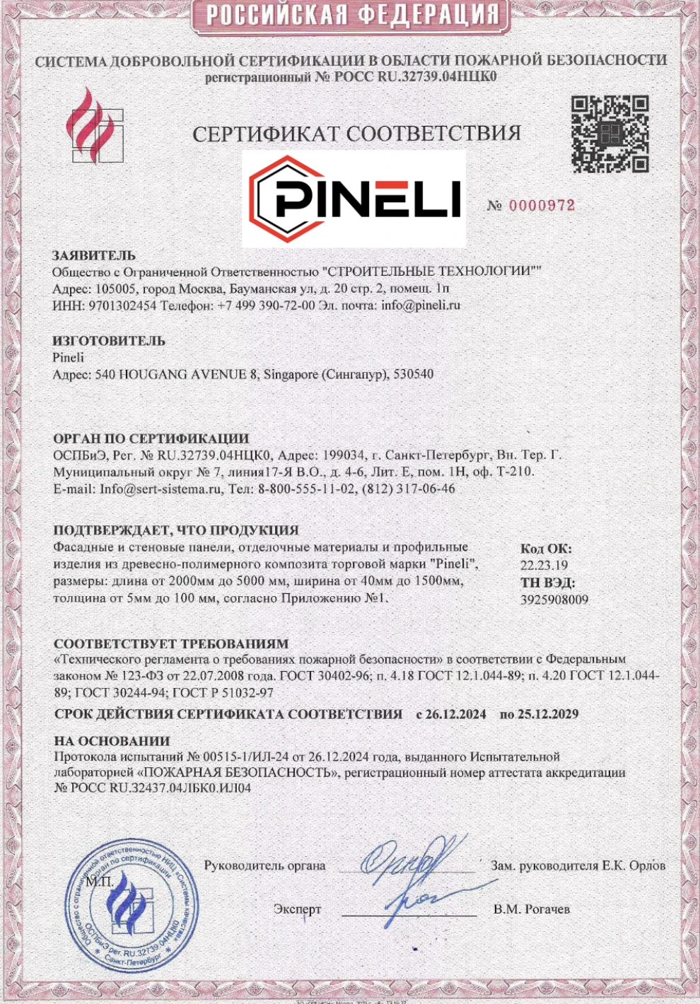 Приложение к пожарному сертификату