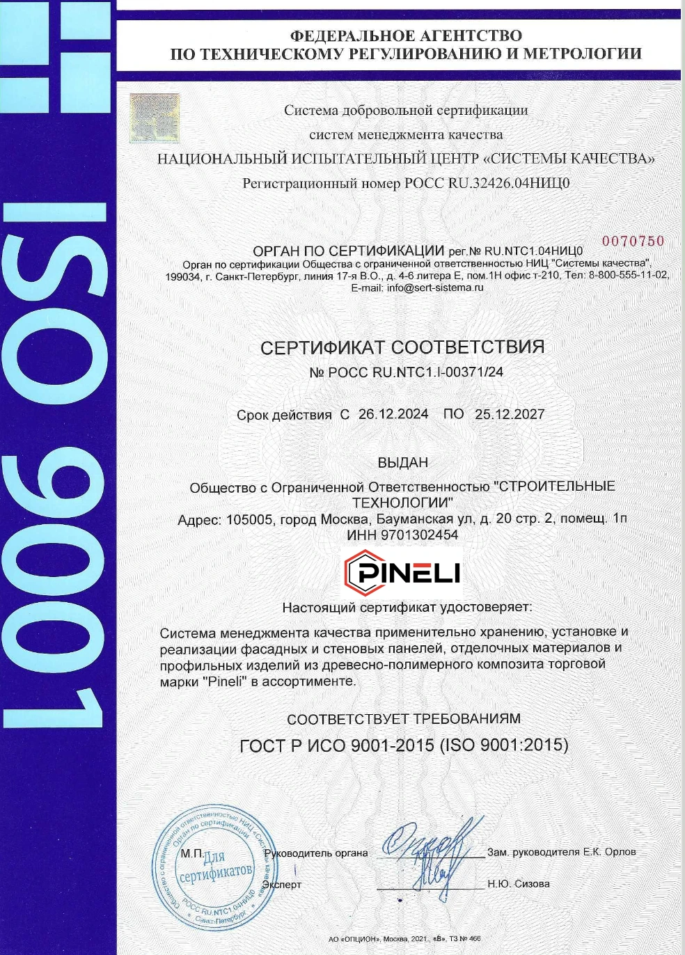 Сертификат качества ISO