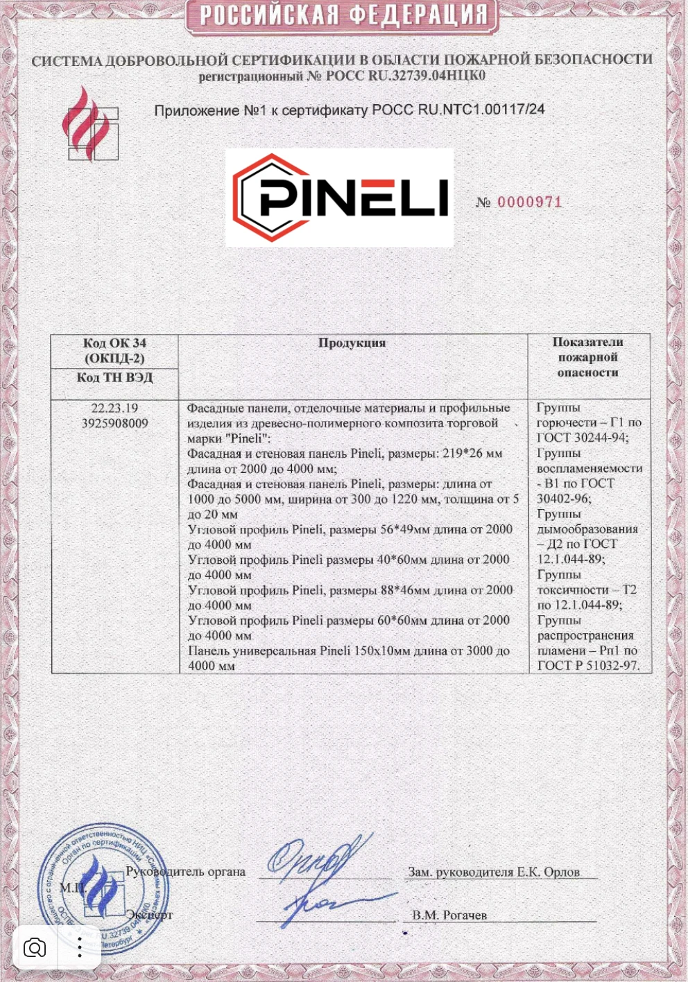 Пожарный сертификат Г1